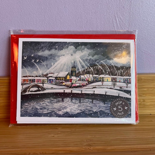 Packs of Welsh language Christmas cards designed by the artist Lizzie Spikes.  All cards are blank inside.