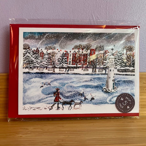 Pecynnau o gardiau Nadolig Cymraeg gan yr arlunydd Lizzie Spikes.